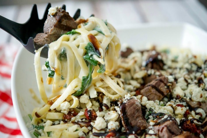 Alfredo Steak House Menu For daily specials and more ! Fettuccine pasta tossed with red bell peppers, broccoli, alfredo sauce, topped with blackened chicken & finished with parmesan cheese served with garlic bread. These dishes from the ricardo steak house menu are contributed by menuism users directly, as part of a restaurant review, or as part of a photo upload. It's sophisticated, indulgent, and oh so scrumptious.